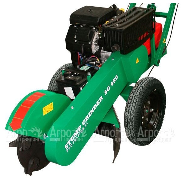 Характеристики товара: Бензиновый измельчитель пней Sable SG450Н/23Подробное описание товараБензиновый измельчитель пней Sable SG450Н/23 обеспечивает качественный процесс удаления надземной и подземной частей пня. С целью хорошей проходимости и безупречного сцепления с поверхностью используются крупные колеса с улучшенным протектором. Важным достоинством модели является неограниченный диаметр измельчаемых пней. Отдельного внимания заслуживает наличие мощного современного двигателя, что способствует высокопроизводительному рабочему процессу и низкому расходу топлива. Для легкого и быстрого запуска устройства предусмотрен электрический стартер. Обеспечить максимально эффективный результат позволяет высокопрочная фреза с зубцами. Для облегчения процесса измельчения используется специальная поворотная рама. В свою очередь, продолжительной работе без дозаправки способствует вместительный топливный бак. Также существенным «плюсом» является небольшая ширина агрегата, за счет чего достигается возможность работать в труднодоступных местах.