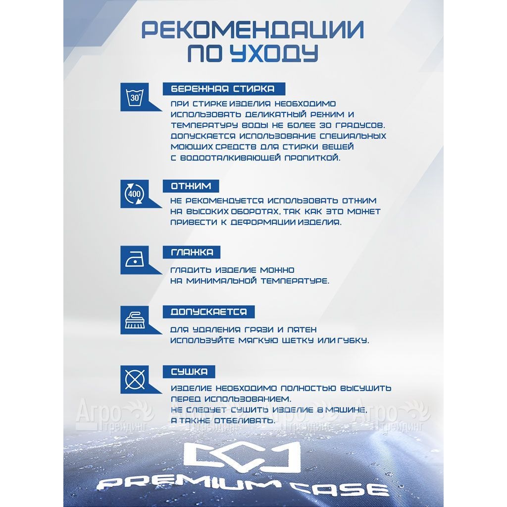 Два надежных фиксатора (спереди и сзади) и сверхпрочный шнурок внизу чехла обеспечивают его плотное прилегание к технике и гарантируют безупречную защиту от непогоды и каких-либо повреждений. Для удобства использования чехол-накидка оснащена практичными петельчатыми ручками, что дает возможность быстро как одевать, так снимать его с техники.