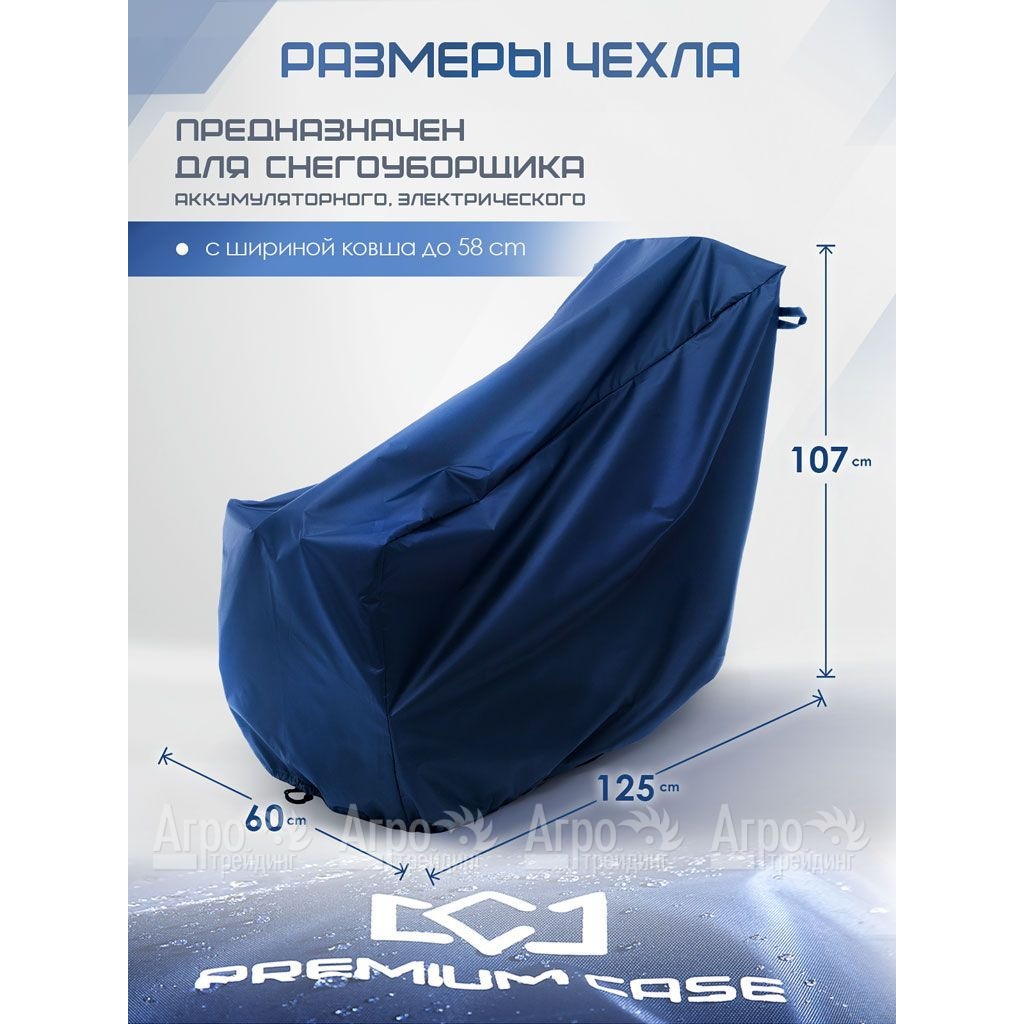 На фотографии Чехол PREMIUM CASE для снегоуборщика аккумуляторного, электрического с шириной ковша до 58 см: